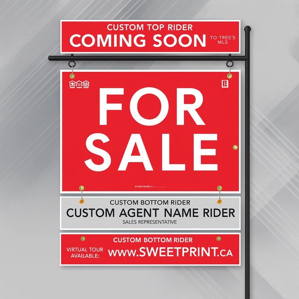 Make every listing impossible to miss. AI Sign designs and produces professional, durable real estate signs with matching top/bottom riders so you can update your message fast—Coming Soon, Open House, Sold, Price Reduced, and more. We print in full color, brand-match your brokerage, and build everything to handle Canadian weather.